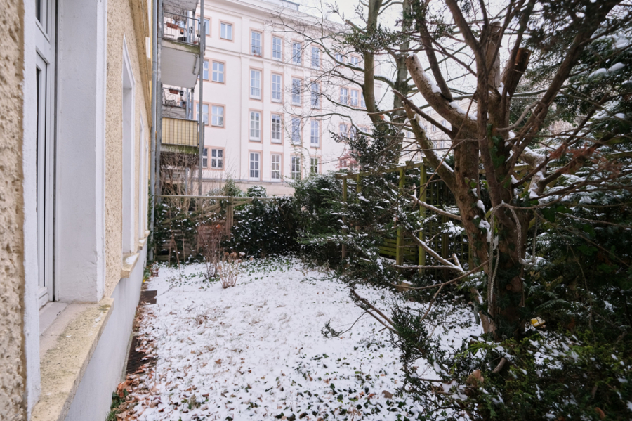 The house is set back slightly from the street with the neighboring building and dates from 1910. With the division in 1996, the entire property was completely renovated, the roof was extended, and district heating was installed.