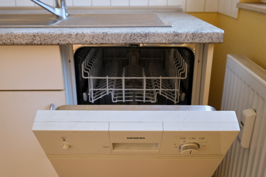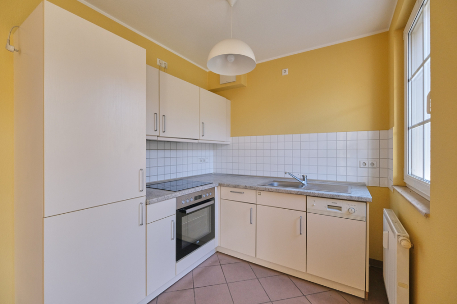- offene Einbauküche mit Geschirrspüler und Kühl-Gefrierkombination