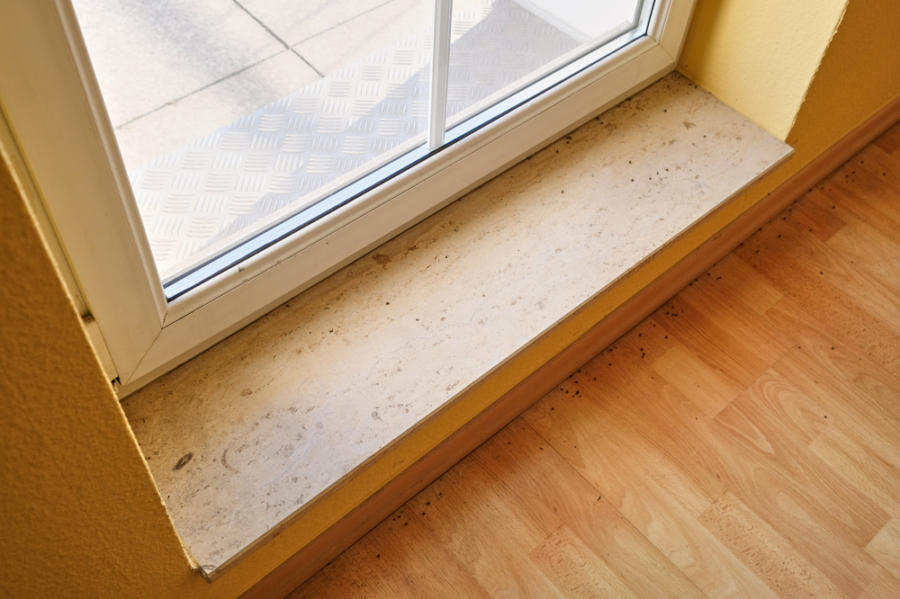 - Modern plastic windows with double glazing with natural stone window sills
